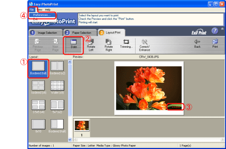 9. 返回「編排/打印(Layout/Print)」設定頁。查看預覽後打印影像。