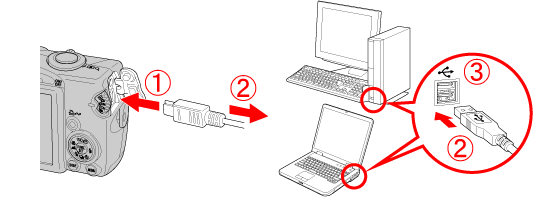 1. 使用相機隨附的介面連接線連接相機的 DIGITAL 端子至電腦的 USB 連接埠。