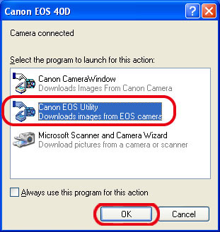 如果出現選擇程式(應用程式)的視窗,請選擇[Canon EOS Utility]。