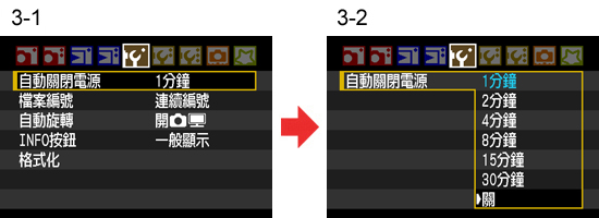 有關自動關閉電源設定的資訊,請參閱相機隨附的使用說明書。