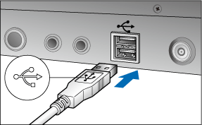 5. 將隨附的 USB 連接線插入至電腦的 USB 連接埠。連接埠位置因電腦型號而異。有關詳細資訊,請參閱電腦隨附的使用說明書。