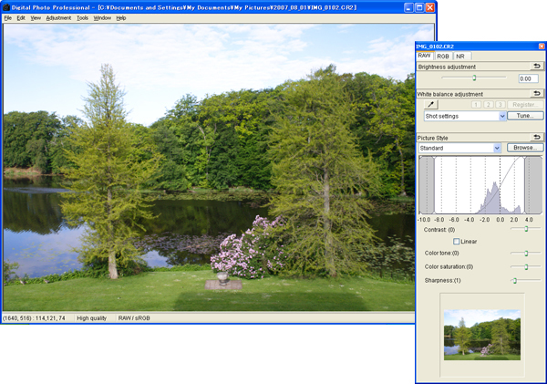 2. 啟動「Digital Photo Professional」並顯示 RAW 影像。