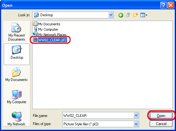 5. 在出現的[開啟(Open)]對話方塊中,選擇要應用的相片風格檔案,然後按一下[開啟(Open)]。