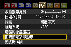 >設定頁。下一步,轉動<速控轉盤>選擇[即時顯示功能設定],然後按<SET>按鈕。