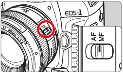 3. 查看液晶螢幕上的即時顯示影像時,轉動對焦環至手動對焦。