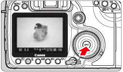 8. 請確保選單顯示消失,然後按<SET>按鈕。即時顯示影像會以約 100% 的檢視範圍顯示在液晶螢幕上。
