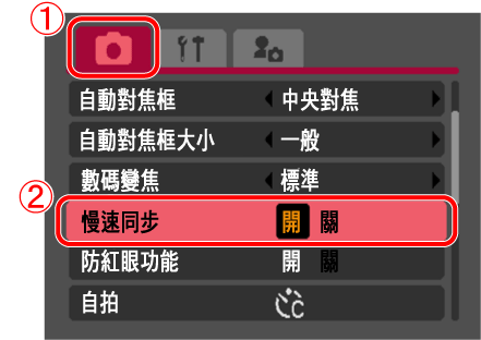 設定閃光燈(慢速同步功能)