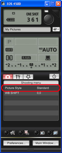 4. 在出現的視窗中,按一下相機圖示及[相片風格(Picture Style)]。