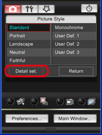 5. 在出現的相片風格視窗中,按一下[詳細設定(Detail set.)]。