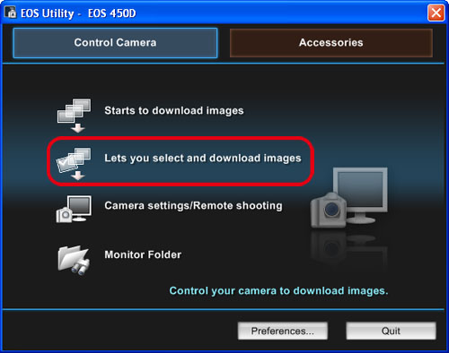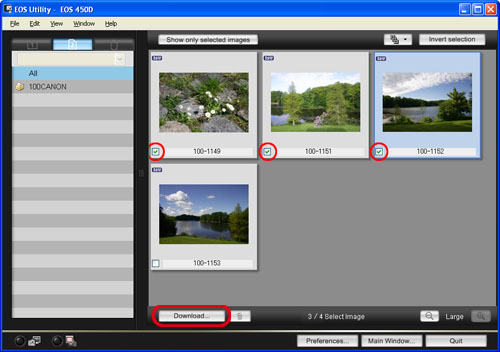 要下載記憶卡儲存的全部影像,按一下「EOS Utility」視窗中的[開始下載影像(Starts to download images)]。