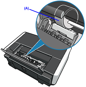 如果問題未解決,用濕棉花籤或類似物品擦拭位於後端托盤內右側的送紙滾軸 (A)。清潔時手動旋轉滾軸(A)。請勿用手指觸摸滾軸;用棉花籤旋轉。如果這不能解決問題,請聯繫佳能服務中心。