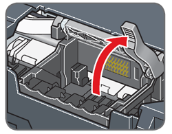 3. 穩固提升列印頭鎖定桿直到其停止。列印頭鎖定桿可能較重。