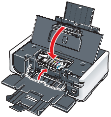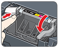 5. 向裡推列印頭直到其安裝到位,小心地放低列印頭鎖定桿。