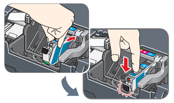 3. 將墨水盒插入右側插槽中並按墨水盒上的