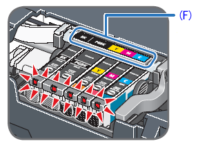 (F) 根據彩色標籤,從右至左依序安裝所有墨水盒。