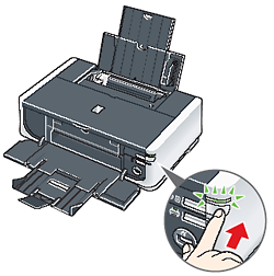 安裝墨水盒後,電源指示燈將閃爍綠色。請等待大約 2 分鐘,直至電源指示燈停止閃爍並持續亮起綠色,並且印表機停止發出作業噪音,然後再繼續操作。