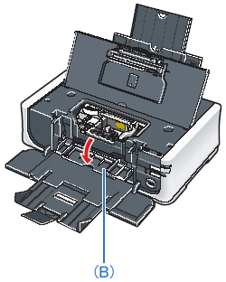 2. 從列印頭中取出橙色保護蓋(B),將其丟棄。