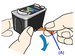 (1) 拆開新 FINE 墨盒並輕輕撕下橙色保護膠帶 (A)。