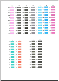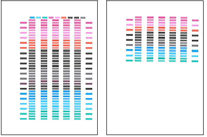 - 在安裝印表機驅動程式後首次自動對齊列印頭時,可能會列印出與上述不同的兩張圖案。