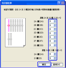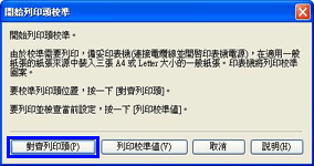 (3) 確認顯示的訊息並按一下「列印頭校準」。