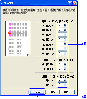(1) 按一下「維護」標籤上的「列印頭校準」。