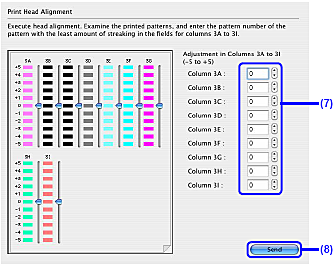 (2) 選擇手動校準列印頭對話方塊,然後按一下「傳送(Send)」。