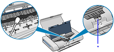 如果印表機內部突出處髒污,使用棉花籤或類似物品將突出處上的墨水擦拭乾淨。
