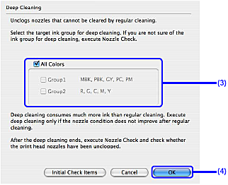 (3) 選擇要進行深度清潔的墨水組。