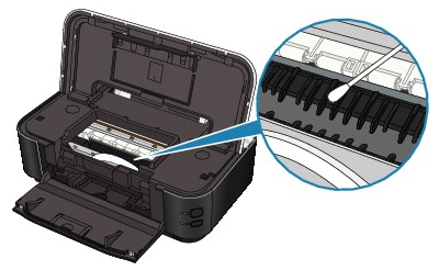 如果印表機內部的凸起部份髒污,使用棉花籤或類似的東西擦拭凸起部份的墨水。