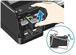取出墨水盒(FINE Cartridges),然後重新安裝。透過重新安裝墨水盒(FINE Cartridges),列印結果可能改善。