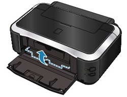 1. 啟出紙托盤 (A) ,然後開啟及內蓋 (B)。
