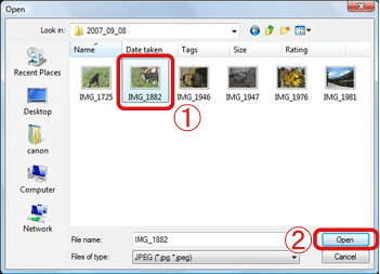 選擇要上載至相機的影像。使用 [ZoomBrowser EX] 下載至電腦的影像通常儲存於 [圖片] 或 [我的圖片] 資料夾。