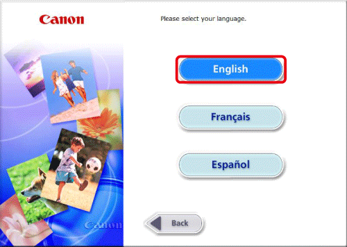 按一下 [下一步 (Next)]。7. 出現下方螢幕。按一下 [英語 (English)]。