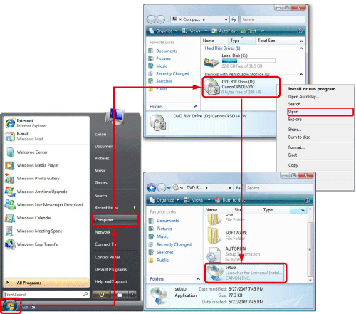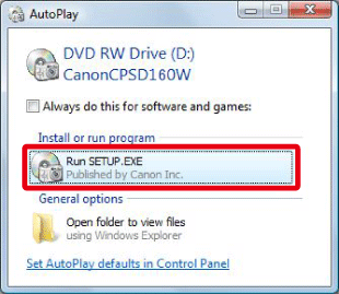 ) > [電腦] 或 [我的電腦] > [CanonCPSD160W] 或 [CanonCPSD170W],然後按兩下 [setup]。