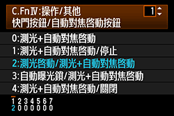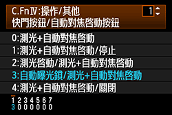 如何查看 [C.Fn IV -1 快門按鈕/自動對焦啟動按鈕] 自訂功能設定