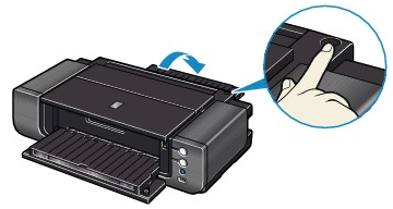 (2) 按前端送紙托架的右角開啟 V 行托架。