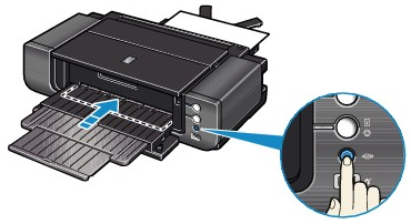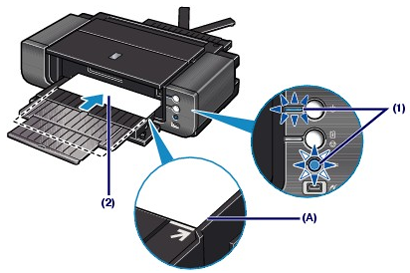 如果印表機處於步驟 4-(1) 中描述的狀態時 5分鐘內沒有使用,[前端送紙]按鈕將停止閃爍並保持亮起,此時您無法在前端托盤中送紙。這種情況下,返回到步驟 3-(3)。