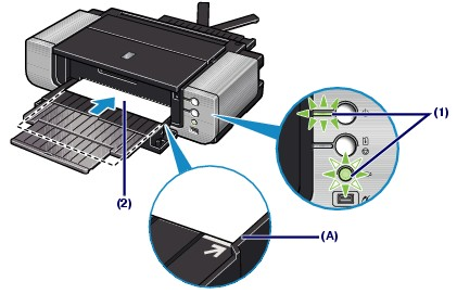 當電源狀態顯示燈閃爍時,請勿裝入紙張。否則,紙張或印表機可能受損。