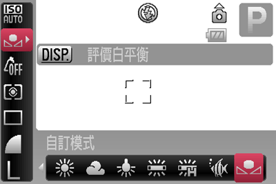 ![]() | 自訂模式 | 手動設定自訂白平衡。 |