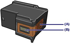 - 請勿接觸墨盒上的電氣觸點(A)或列印頭噴嘴 (B)。如果觸摸,本機可能無法正常列印。