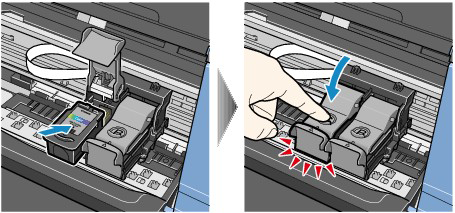 向下推動墨盒鎖蓋直至其發出「喀嚓」聲。