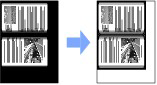 - 即使選擇了滿版影印或消除黑框,您也可以透過選擇頁面大小以指定比例影印。但是,當選擇滿版影印時,放大/縮小比例與選擇標準影印時不同。