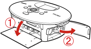 - 將SELPHY置於桌子等平穩的表面上。請勿將SELPHY置於不平穩或傾斜的表面上。