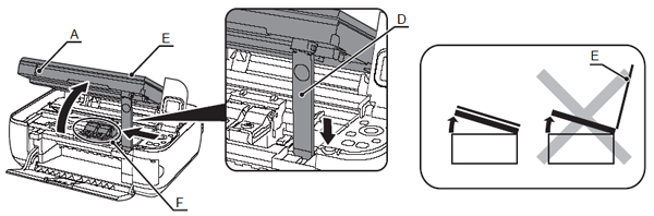 關閉文件蓋 (E) 並使用掃描單元(機蓋)提起。
