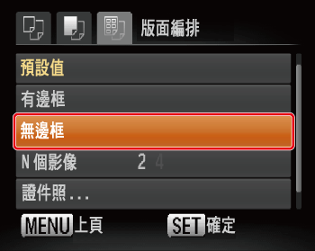 9. 出現下方螢幕。指定[邊框]及在一張紙上的打印張數,然後按<FUNC./SET> (