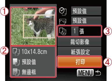 裁切後打印(從佳能相機打印)