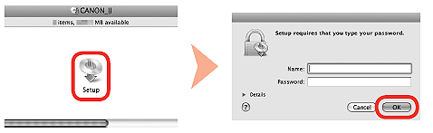 2. 按兩下光碟資料夾的「安裝(Setup)」圖示執行到下一螢幕。輸入您的管理員名稱及密碼,然後按「好(OK)」。