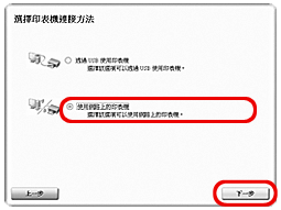7. 選擇「在網路上使用印表機(Use the printer on network)」,然後按一下「下一步(Next)」。