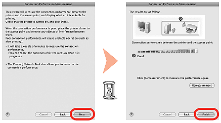 - 您可以透過按一下 [ 取消 ] 取消測量。您也可以在設定完成後查看通訊的詳細狀態。關於詳細資訊,參閱電子說明書︰「進階指南」。