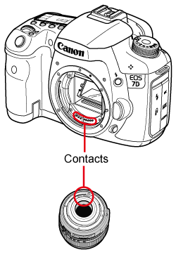 如有一方的接點髒污,則無法正常通訊,並且有些情況下自動對焦可能無法正常操作。如果鏡頭或相機接點髒污,請使用清潔的乾布輕輕擦拭。